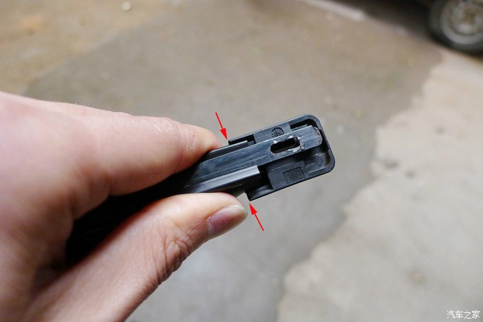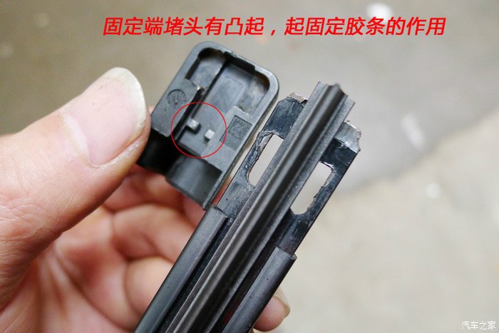 先找到雨刷的固定端,手抓住胶条回拉一下,能拉动的那一端叫活动端,拉不动的那一端叫固定端