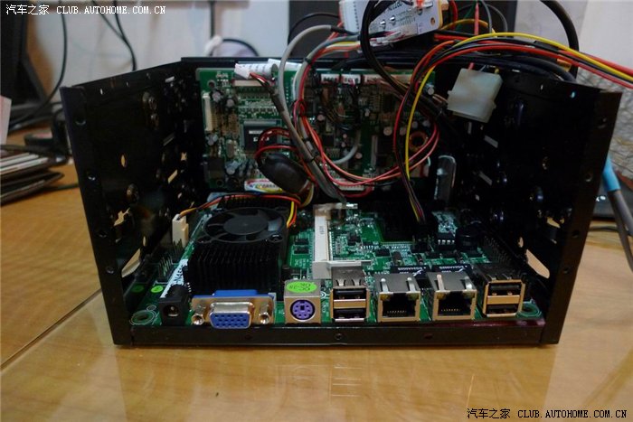 背板上蓝色的是电源模块,SSD硬盘也要贴在顶部,还准备了改装个笔记本光驱在副架,但有硬盘,有网络,很少用