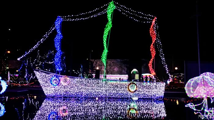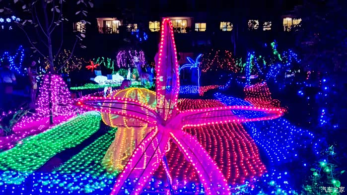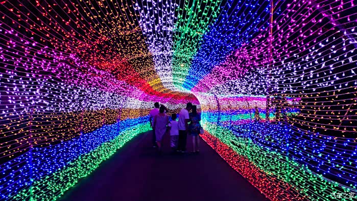 乐的笑容。流光溢彩、交相辉映,万盏灯火筑成了一片欢乐梦幻海洋。
