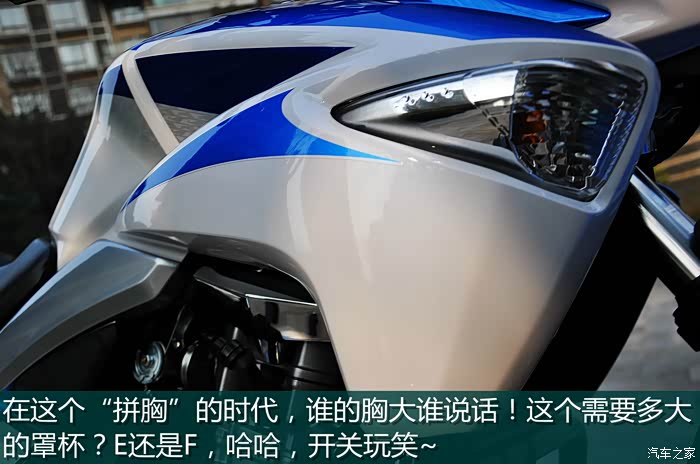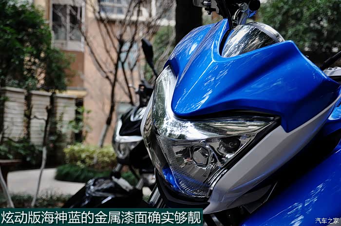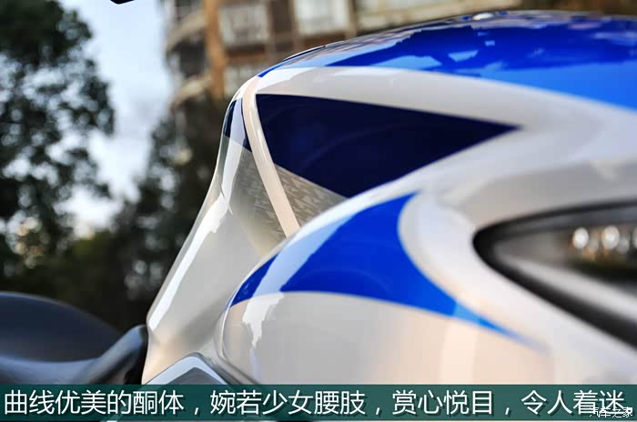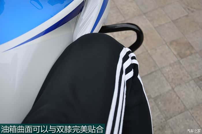 本人对油漆比较讲究,虽然一直钟情于黑色,但“标准版”黑色漆水略显单薄,且不是金属漆;LD也坚决反对我选黑色。“炫动版”蓝白金属漆自然就入了LD法眼,该色系一则靓丽&漆水好,再则醒目,安全第一嘛,谁叫人家是武松,咱胳膊拧不过大腿,老虎也有低头时,就是它了。