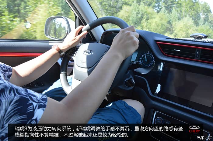 本次旅行驾驶的车辆是奇瑞新瑞虎3,新款虎3外观时尚靓丽,增加了黑色钢琴漆中网、LED日间行车灯、光带式尾灯等时尚元素,使车辆一下子年轻活泼了不少。内饰方面更让人眼前一亮,尤其在黑色内饰氛围中加入了亚光色的装饰面板和红色饰条很提升车内品质感。虎3的前麦弗逊后双连杆悬架调教的偏为舒适,城市路面和高速公路驾驶还是有着很不错的行驶质感。机械液压助力转向一改老款手感偏沉变得轻盈并具有和一定回馈力度。踩下油门初段车辆反应比较轻快迅捷,和变速箱配合在日常使用过程中可以尽职尽责。当然通过几天的驾驶也发现了虎3几处不足之处,先说一下后排座椅放倒后有一个较高的台阶对出行使用的便利性有一定的影响;悬架在过比较大的起伏路面时弹簧回弹不够迅捷,抛离感较明显;在上山路时动力储备显现不足,需要降档再降档才会有足够的扭力;还有一点在高速行驶时如果降速再想升到需要的车速还是要有一些耐心的。