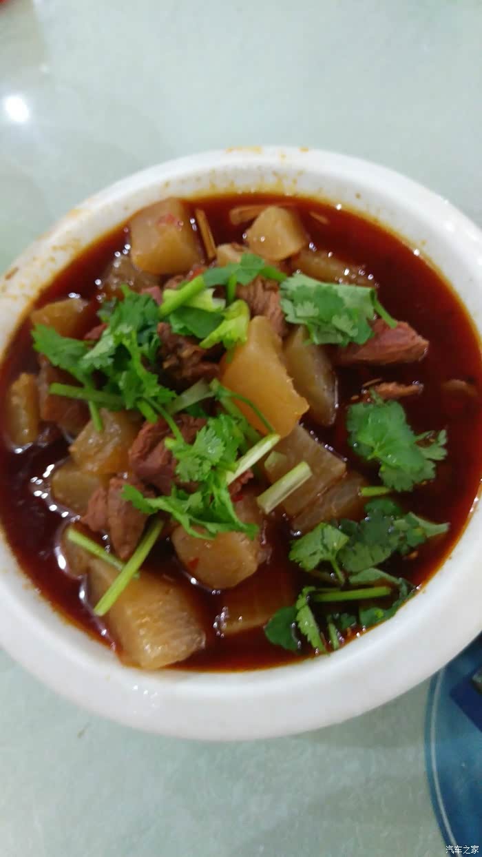 牛肉比较嫩,很软和,适合中老年人。味道也不错。粉蒸牛肉特别软,素菜汤应该也是煮过牛肉的汤做的,整体说来不错。