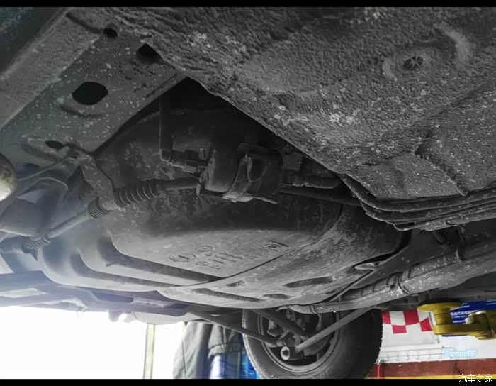 因为车里要上架子,想想汽油滤芯也有个5w公里左右没换了,一起换了吧,嘿嘿,检查了刹车片