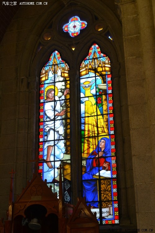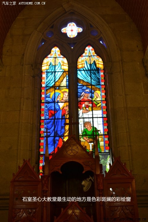 石室圣心大教堂最生动的地方是色彩斑斓的彩绘窗。教堂的门窗都用七彩的玻璃镶嵌,描绘着一个个耳熟能详的圣经故事,阳光穿过斑斓的彩色玻璃,折射出淡淡的、朦胧的黄色光线,尤如来自天堂的圣光,营造出柔和、慈祥、肃穆的宗教气氛。