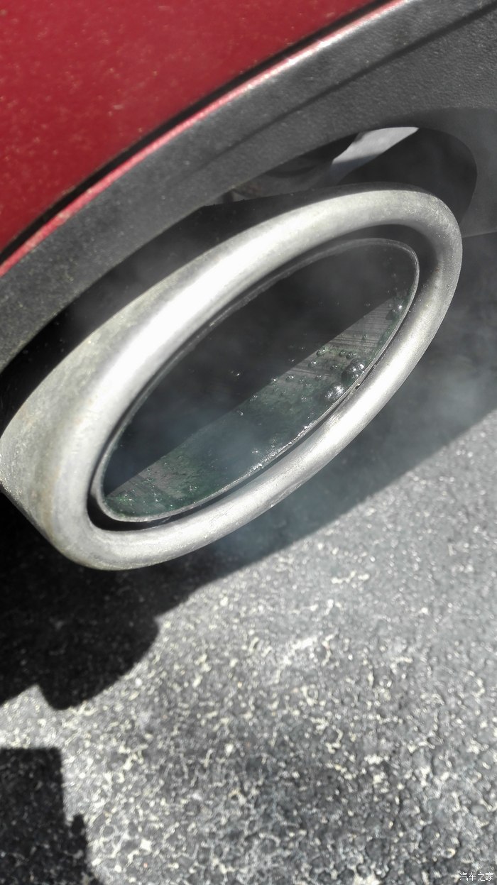 怠速了一会会,有点效果,排气管开始冒白烟了