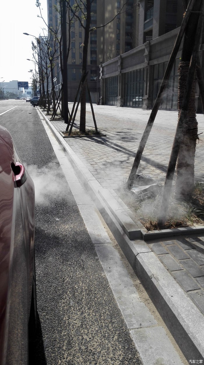 继续白烟中,人最好不要在车尾,那味道很刺鼻