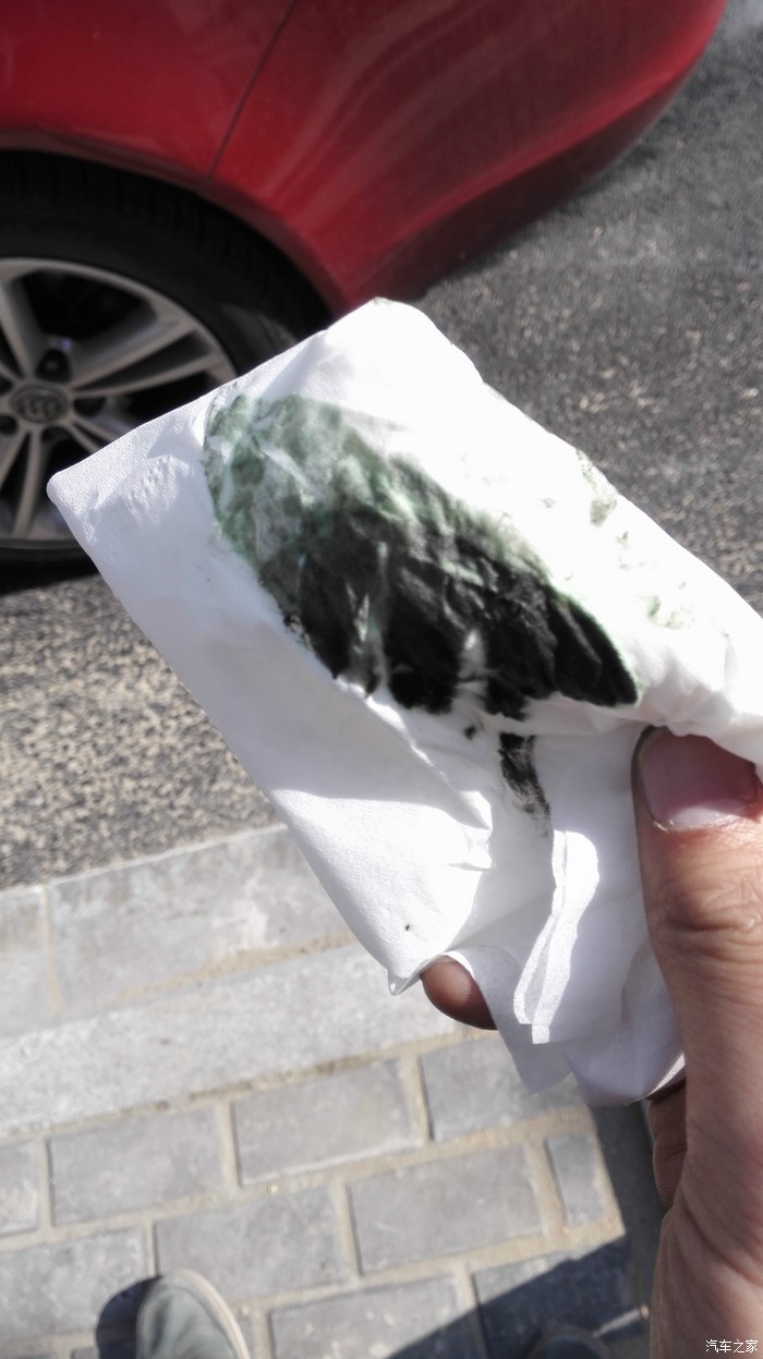 用纸巾擦拭排气管,好黑的积碳