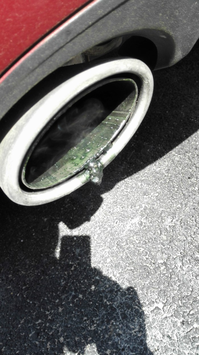 排气管里开始也绿色的废液出现