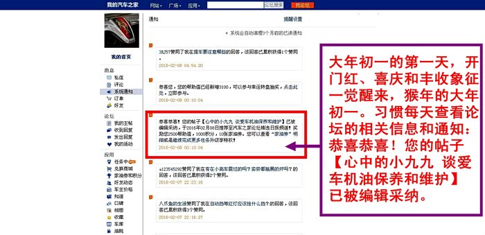 一觉醒来,猴年的大年初一。崭新的一天、崭新的一年开始扬帆启程。打开汽车之家首页,习惯每天查看论坛的相关信息和通知: