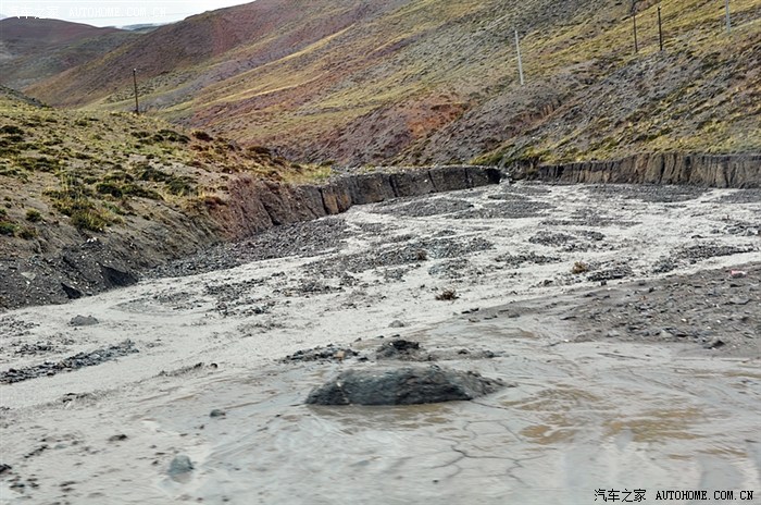 路遇泥石流,还好只有一小段,为了安全,我把途途设置为4驱模式,轻松过去,小车有难度,淤泥太深,估计抓地力没有了。不过这也是突发情况,这条路一般还是没问题的!!美景之下也有风险,车友们注意!
