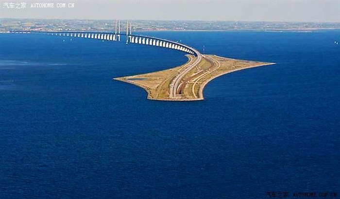 厄勒海峡大桥全程跨度16公里,连接丹麦的哥本哈根和瑞典第三大城市马尔默,于1995年动工,2000年5月完工,是目前世界上已建成的承重量最大的斜拉索桥。大桥三部分组成,其中8公里桥梁、4公里人工岛上公路、4公里海底隧道。最大的特点这条桥一半在水上,一半在水下。