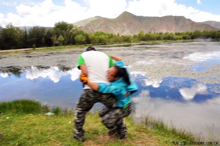 在拉萨河边戏耍,二瑶吓得紧紧抱住我