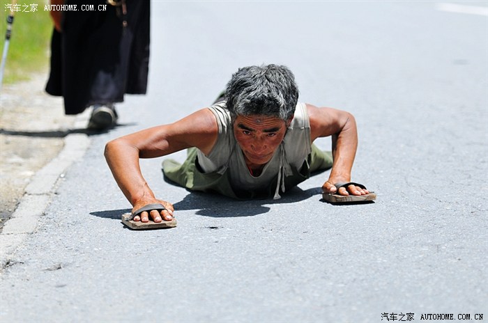 往拉萨途中,遇到一对老夫妇,虔诚地磕着等身长头。他们一路从四川的甘孜过来,风风雨雨,酸甜苦辣,同甘共苦,已经磕了7个月了,还有十五天,(我们开车只需1个小时)他们就能到达心目中的圣地:拉萨。看着老人额头上磕的伤疤,已经化脓,这是什么?信仰,信仰的力量。