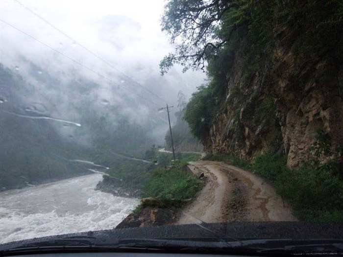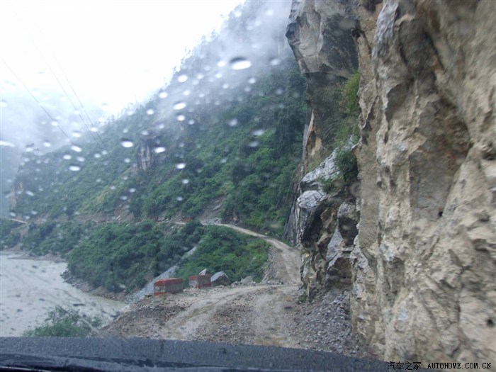 丙察线云南段相较西藏段不仅路况好也宽许多,接近滇藏界路况就变得险恶起来,路面狭窄湿滑不说,有的地方路面还向外倾斜,LP坐在靠山一侧一点恐惧都没有,还说这路一点都不险,结果第二天她多数路段在外侧,车子一但向外倾斜两脚就把地板蹬得梆梆紧,手还不忘紧紧抓住拉手。实际上人类的这种内心活动就如高空走平衡木与地面走铁轨一样,紧张自不必说。