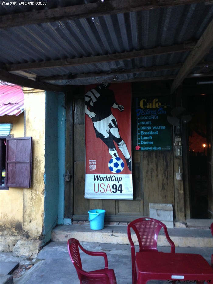 一个咖啡店门口还挂着二十年前世界杯的宣传画 很穿越