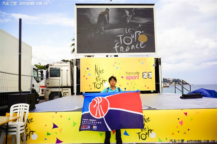 得知我要来,车队早就把队旗给我了,和环法来个合影