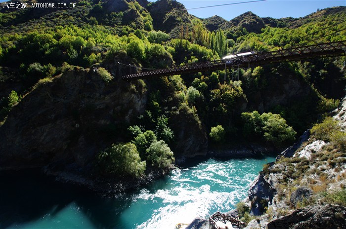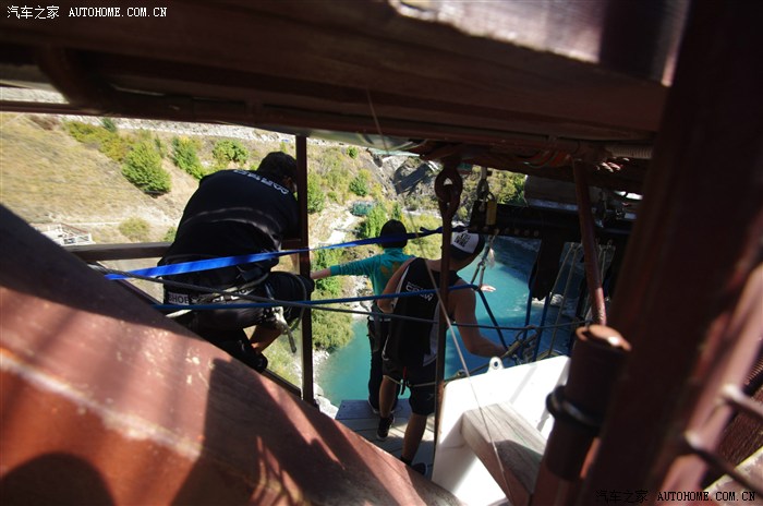在皇后镇呆两天主要是因为家属要参加皇后镇蹦极,我义无反顾的拒绝了参加这项急剧分泌肾上腺素的活动。家属选择了40米经典蹦极,蹦极的位置在皇后镇郊的一座山谷,环境确实很优美,落差确实很恐怖,在单细胞家属绑好腿绳以本车第一名的气度站到蹦极台上的时候,恐惧感此时才传达到脑子,站台上跟工作人员“NO、NO、NO”了半天,好在英文单词只懂这几句,为了不浪费这一百多块的费用,一咬牙还是蹦了下来,旁边的韩国大妈团一阵"a za a za fighting"的欢呼,霍霍霍,看来她不是一个人在战斗,伟大的亚洲人民以你为荣!!
