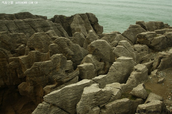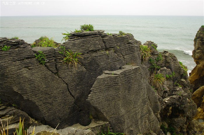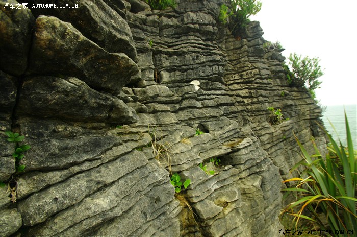 今日重要的行程是号称煎饼岩的“Punakaiki”,到达景区停车步行十分钟即可看到这种奇特的岩石景观,感觉用千层饼形容更合适吧~