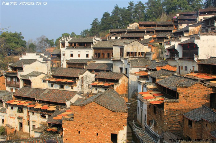 晒秋人家,原称婺源篁岭,地处江南山区。村落依山而建,村民房屋呈阶梯状U型分布