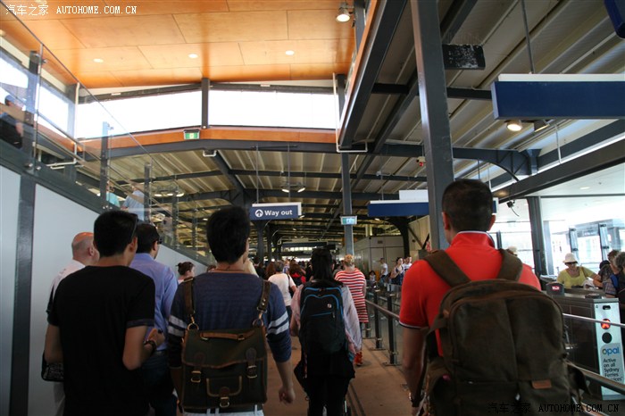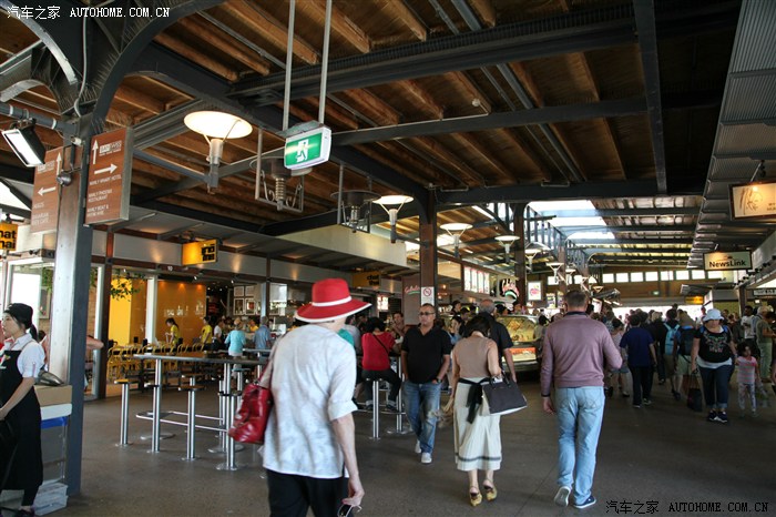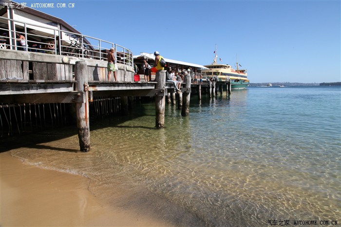 待船靠岸以后出闸口,一路上会有明显的指示标识。坐这趟快船的基本都是到Manly的,跟着人潮走就行了。出来一路上都会有很多吃的,没吃饭的可以补餐,我们也补充了一些,主要还是寿司和Subway之类的快餐。码头一出来就可以看到海滩。