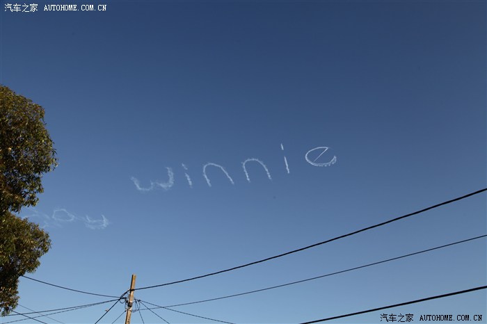 回到家门口,看见天空中有喷射机在书写叫“Winnie”的女生名字。我们猜想这女生是不是被求婚了?实在觉得太拉风,几个女人立刻激动的像自己被求婚一样……