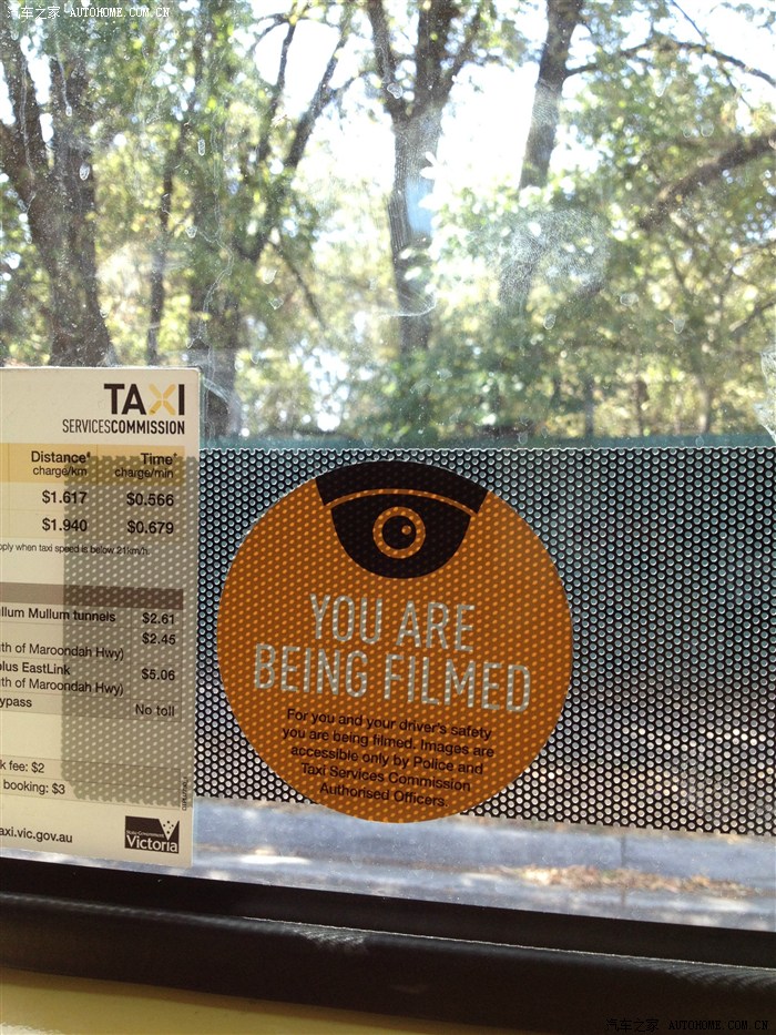 澳洲所有的出租车上都配有摄像头,一旦发生事故或纠纷可以录像取证,还挺给力的