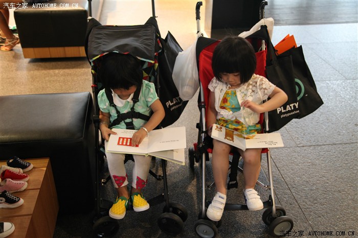 之后再进商店购物,俩孩子已经没空阻止我们了,推车上翻翻小书可开心了~