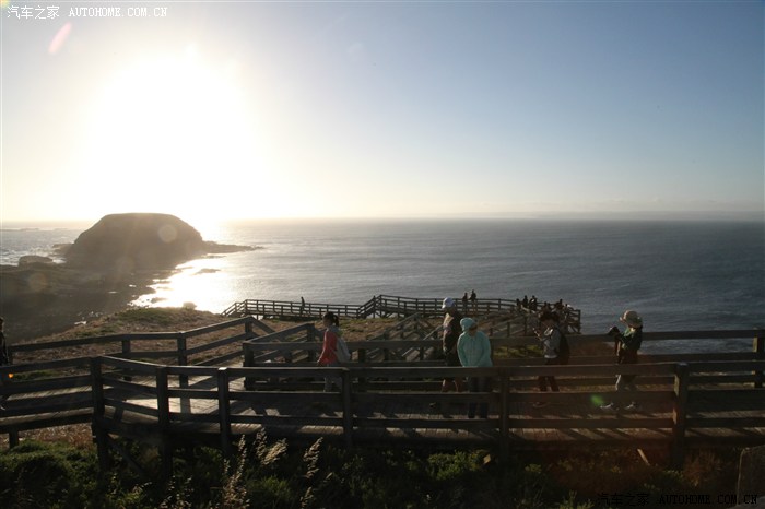 吃完晚饭准备往诺比斯角行驶,在那儿据说可以看到海狮在岩石上休息嬉戏,但本人的视力实在不敢拿出来禀报,只能看到黑压压的岩石……大家在栈道上走走逛逛等待黄昏日落。