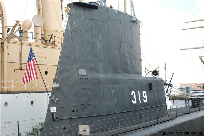 透过树丛,我看到一艘铁甲战舰、一艘二战潜艇,一艘多桅帆船,并列在码头上。