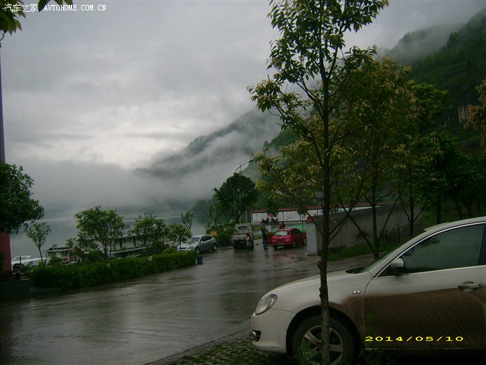 今天是5月10日, 昨天晚上半夜3时左右听到窗外大雨哗哗的,也不知道天亮后会不会停雨。如果大雨不停就要困在这里啦!天亮后还不错雨停了。我们收拾好行李下了三楼。因为天还早我们齐动手把车擦了一下。