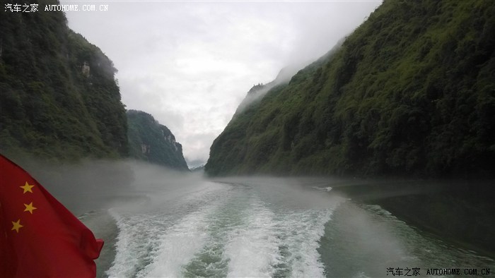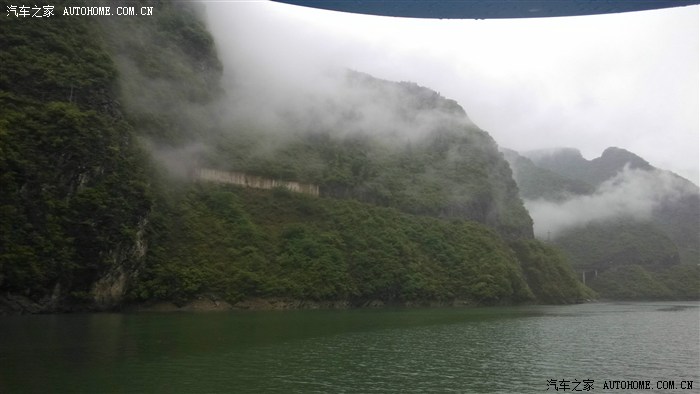 九点半开船,这时小雨又下起来,一会儿下一会儿停。雨中乌江画廊更好看,滿江滿山雾气茫茫。滿船的人一个一个都手忙脚乱,站位取景照相一片忙乱,甚好这不是节假日,船 并未滿员,否则不知该乱成啥样。一句话鸟江画廊名不虚传。