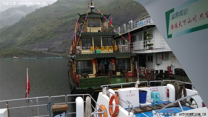 我们开车一会就到了码头,今天正好有上海的一个夕阳红旅团,还有五个成都的自架游等散客共有二十几人,刚好凑够一船否则的话只有等下午。如果下午去龚滩晚上就没有回程的船了。只有在那住一晚了。这次来游乌江画廊来的真不是时候,大雨冲毀了万足至龚滩的公路。本来可以水路走(每人一百贰拾元,一百元是船票,二十元是游龚滩古镇)。公路回(肯定用不了八十元)。现在每人二百元(其中20元是龚滩费)非掏不可。没办法出来就是花钱的!花就花吧!