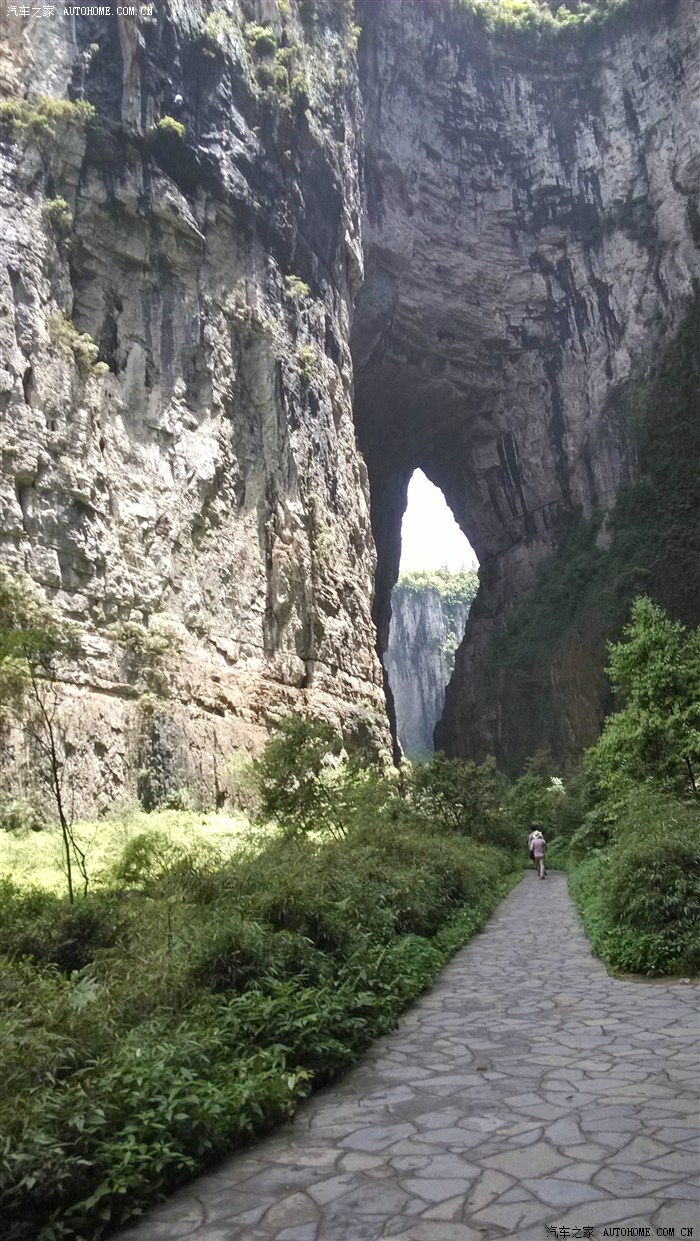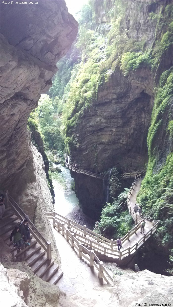 第一个景区天生三桥玩了近三个小时。1点半出来 。在换乘站填了填肚子,休息了一会1点45分开始乘车到地缝。本来我很担心自己的体力,不知道景区内路难走不难走。可巧遇到一个景区工作人员,他告诉我们整个地缝景区基本上没有向上走的路,而是一路向下。这样好!不至于把我累趴下,还等什么,下吧!