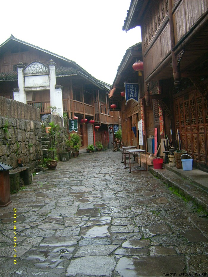 爬了几十级台阶才上到了古镇最下面的街道,没有向再高一层爬去。顺着街道向南(因为回程船是在向南2公里的江边)。街道很窄两边都是木制房子,家家开店,户户做生意。