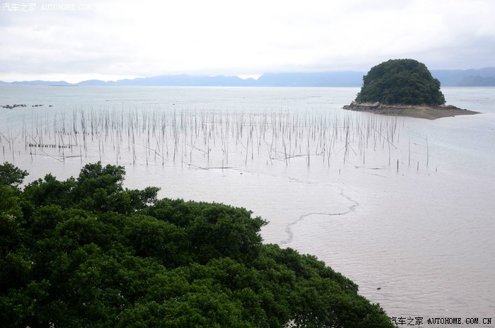 回路又拍了这张照片,这个原先尚有路连接岸边的半岛,现在滩边涨潮了变成孤立的绿岛了。(请与前示过的一张照片对比一下)