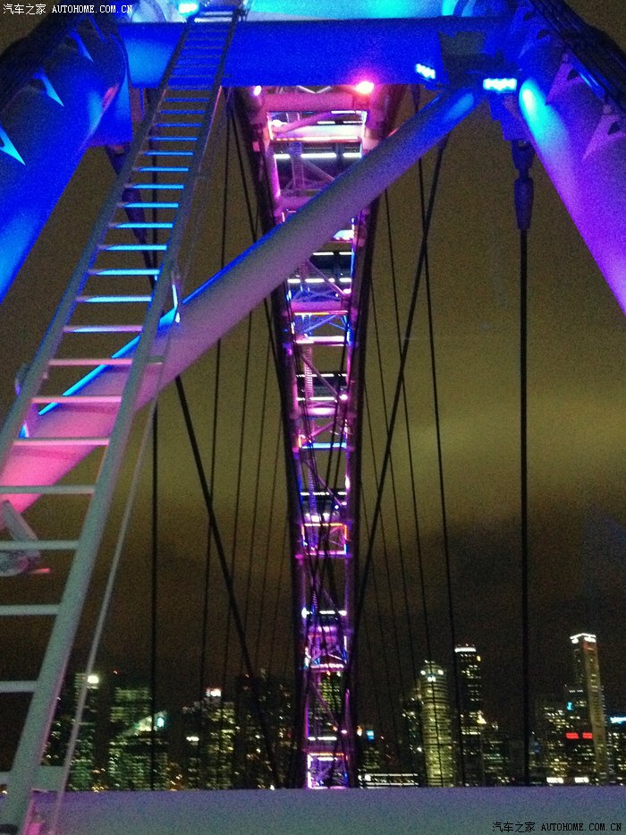 摩天轮坐落在滨海中心填海得到的土地上,42层楼高的摩天轮的直径达150米,超过130米的伦敦眼。此外从摩天轮上可以饱览新加坡市中心之外,白天还能远眺直到约45公里外的景色。一眼看三国,包括印尼的巴淡岛、民丹岛,以及马来西亚的柔佛州。