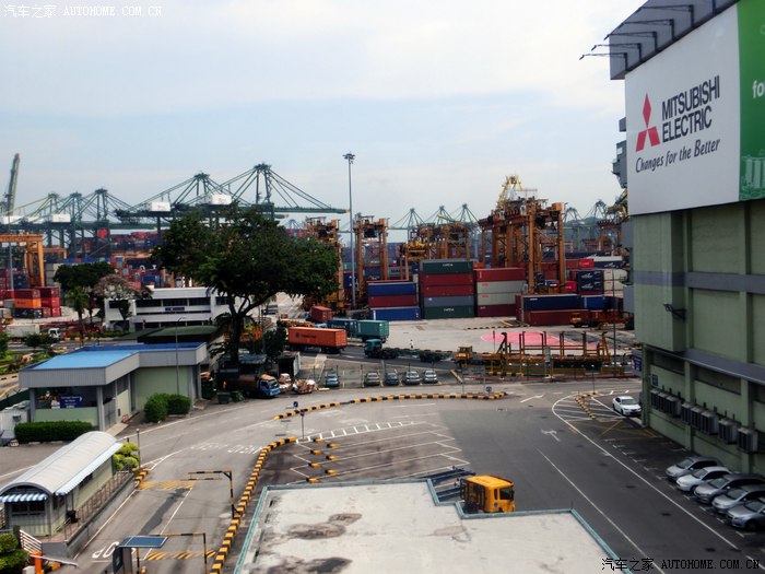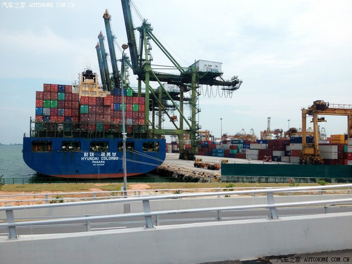 路过的集装箱码头。2013年港口吞吐量全球排名,上海第一,新加坡第二。