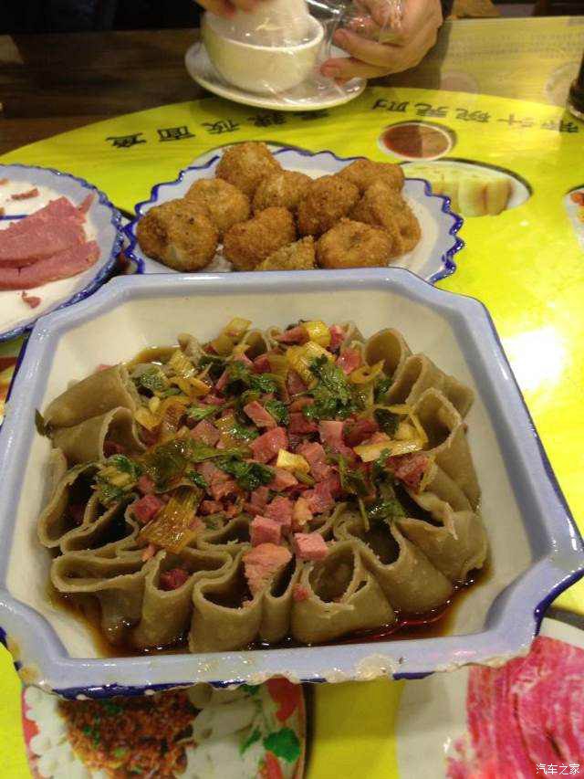 在一个环岛堵的居然都熄火关灯了!有一个有素质的都不会这样,最后等了小20分钟,总算找个空钻过去了!按攻略的美食,我先吃他说5颗星的柳巷面,按导航开了20分钟到达市中心,东大街的案板街吉庆巷,一个胡同非常不起眼的老字号。我以为找错了地,从胡同口往里看,什么都没有,连个霓虹灯都没有!这要不知道,绝对找不到!进去根本没有其他的,就是面!类似北京炸酱面。还算不错!5星没有,给个4星吧!