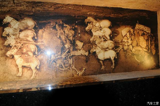 进去是一个展览厅,3个坑道厅。先是展览厅,主要就是发掘的两辆战车-两两车。
