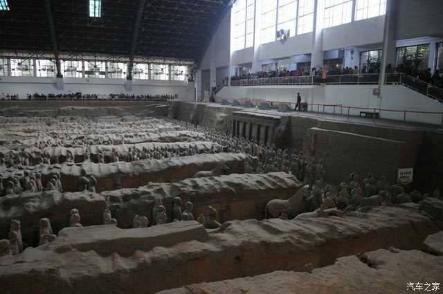 陵园头顶一处温泉,脚下有一条河,左手拿玉,右手拿金,金玉良缘。风水极好,这也是这么几千年,秦陵也没有被盗!听讲解员说,这里发掘的3个坑,第1个坑是最大的兵马俑坑,相当于驻扎部队,2号坑是生活,艺伎类的俑坑,第3个最小是指挥部坑,这些所有只占秦陵的万分之三!秦始皇墓在3号坑东面1.5公里处,已被探知,但据传说里边有大量机关,暗道,及水银!国家探明的确汞含量超标,与记载量大致吻合。所以50年不开挖!可惜这辈子看不见了!