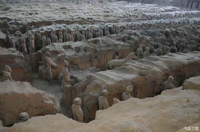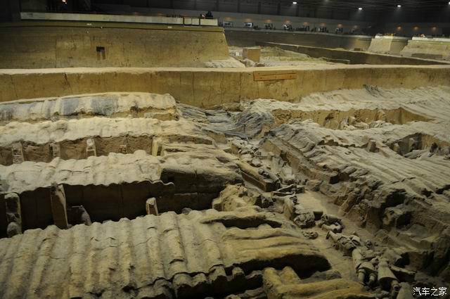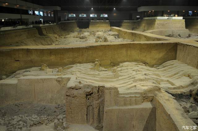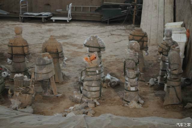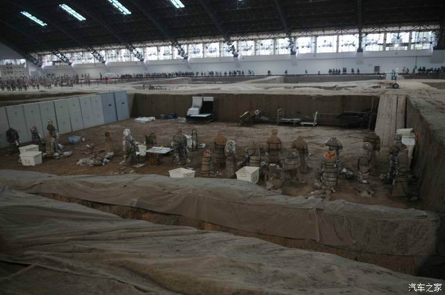 这里是2号坑,大小是1号坑的一半,这里分4个部分,大都是生活俑,表演杂耍俑类的!而且大部分都没有开挖!等再过多少年,才能展现全部!