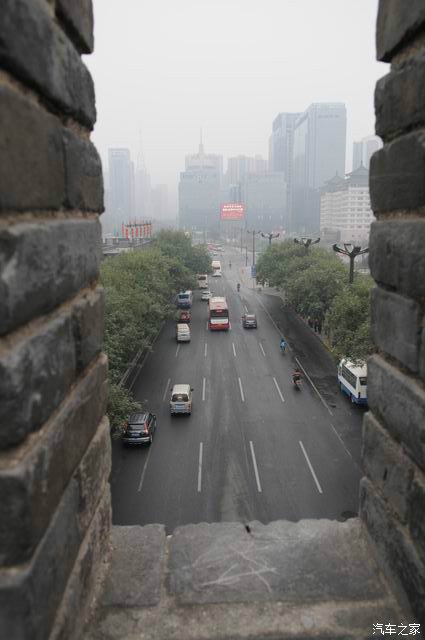 城楼垛口看下边,现在的街道!