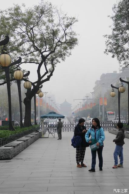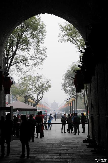 吃起来还可以,是羊肉的。虽然不如猪肉,也是那种很烂的肉!老婆孩子都咬了口就不吃了,最后我给解决了!哎,貌似我们对西安美食也不太感冒!最后走到南口,就是鼓楼下。