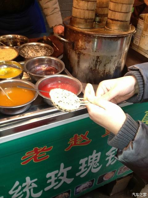 孩子又要吃桂花糕!我吃了4串大个羊肉串,算是吃饭了!接着往南走,好多这样的做芝麻糖的!