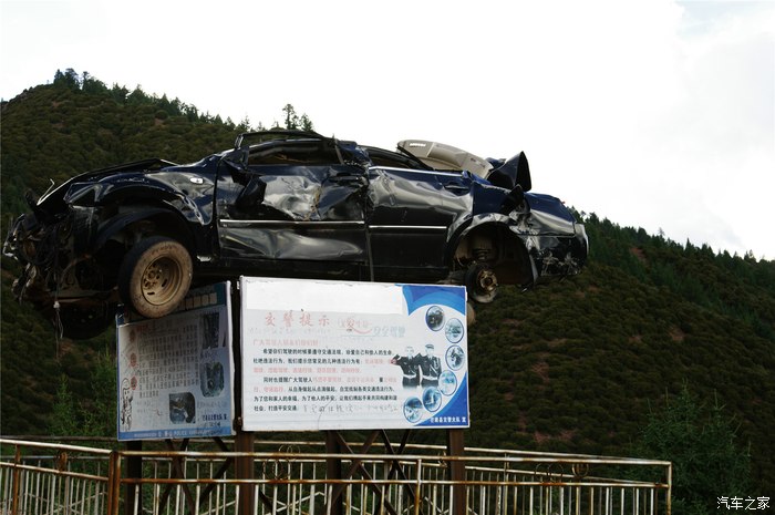 本来估计到芒康应该住下,但看看天色实在太早,就继续上路了。出城后,首先给司机们敲个警钟。看介绍,这辆倒霉的车正是在角笼坝大桥出事的