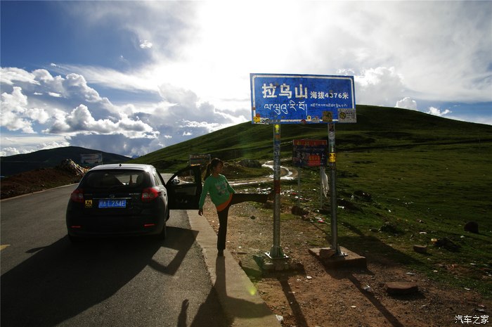 4376米的拉乌山垭口,以前的石堆也不见了,取而代之的是这块没有个性的牌子。老婆你也别踢啊,踢坏了要赔的