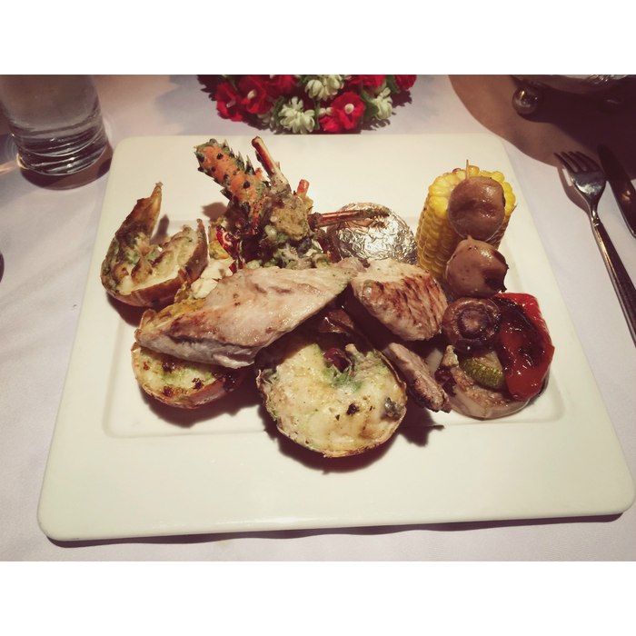 BBQ套餐包含一些面点 一只巨大的龙虾 妹的我真心没吃完 还有马代的鱼 还有甜点 虽然88美刀一个人 但是氛围真的很好 而且量超大 根本吃不完~