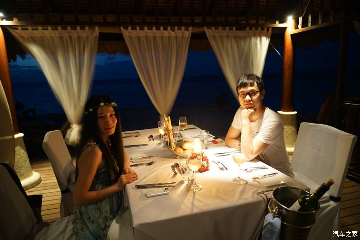 然后在最后一个晚上我们还预约了BBQ 非常LUCKY的是呢原本BBQ是在房间后面的海滩进行的 因为那天天气不好 工作人员给我们安排在了日落亭 还布置的跟烛光晚餐的套餐一样~BBQ的价格是88美刀一人 而烛光晚餐是170美刀一人 真心非常贵 但是来都来了总要享受一次吧~
