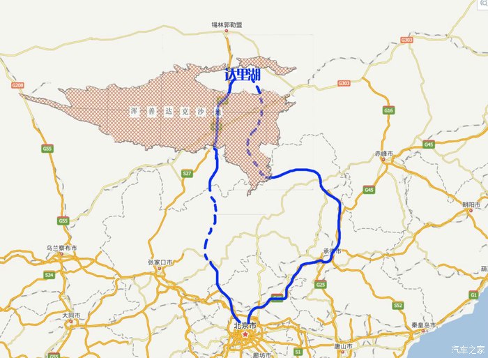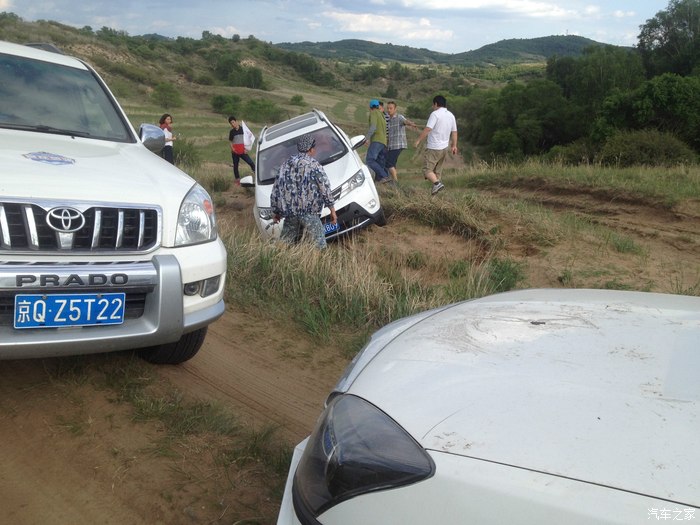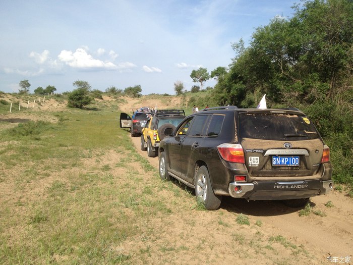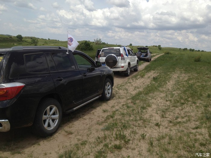 1、第一天(6月20日),北京(京承高速)——围场北——-多伦县大河口乡——乌兰布统公主湖度假村,住公主湖度假村;穿越线路:大河口乡——公主湖度假区,里程80km左右,耗时4个小时。难度一般,主要是草地、河滩、不多的沙丘,一共有11辆车穿越,其中两驱车3辆,不幸的是当天两驱车全部沦陷,最后通过多方救援得以脱困。