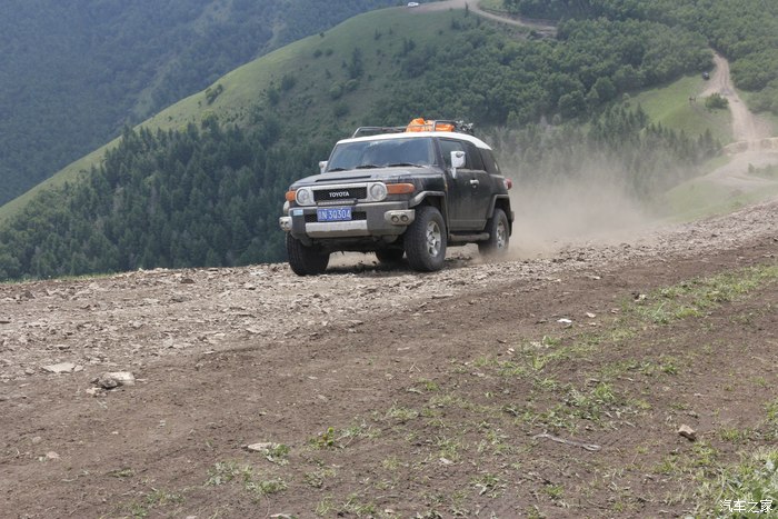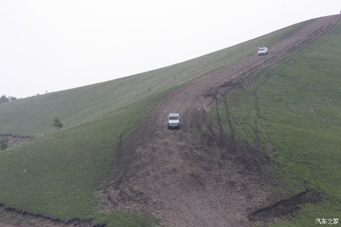 酷路泽冲上好汉坡!实际坡度还是比较恐怖!快到陂底有难度较大的炮弹坑与交叉轴路面!